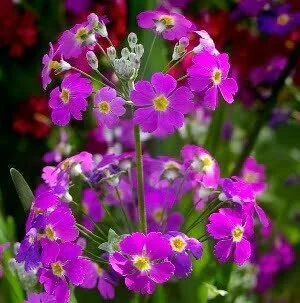 Primula species sometimes bears just a single bloom, but often a large terminal head or several well-shaped whorls of flowers.