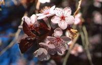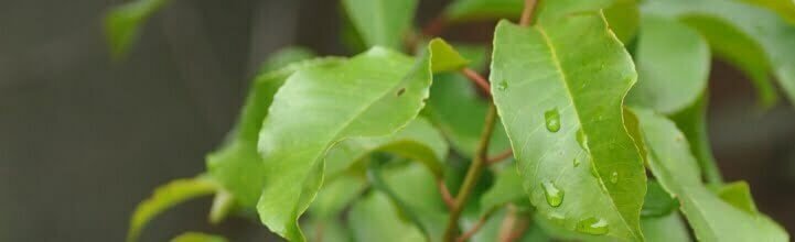 A medium-sized tree with a rounded crown and glossy, dark green foliage that has an almond scent when crushed. Bears fragrant, small white pinkish flowers in summer, followed by very bitter, pinkishbrown, cherry-like fruits. A lovely shade tree.