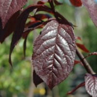 | Recommended varieties | P. cerasifera ‘Vesuvius’ (red-leaf cherry plum) has wine-red leaves and bears large, pale pink flowers. |