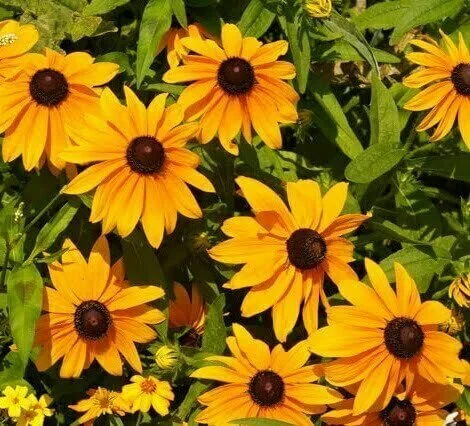 A short-lived perennial with rough, hairy stems and foliage. Bears orange-yellow, sunflower-like flowers from summer to autumn. Do not overwater. Makes good cut flowers. R. hirta ‘Indian Summer’, which grows to 800mm tall, has large yellow flowers. ‘Sonora’, 400mm tall, has small yellow flowers with a black centre. R. Fulgida var. sullivantii ‘Goldsturm’ (600mm) bears large golden-yellow flowers during summer.