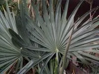 A hardy, smallish palm with fan-like, blue-green leaves. As it tolerates both frost and drought, it does well in outdoor containers.
