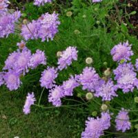 This lovely hybrid perennial produces deep lilacblue flowers throughout the year; deadhead for perpetual flowering. It grows best in full sun. S. columbaria ‘Pink Mist’ bears pink flowers.