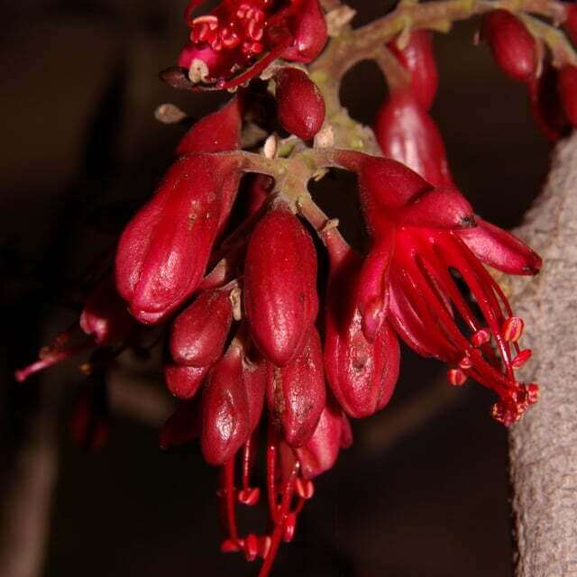 | Flowers | September October November In spring, it is covered in russet crimson flowers that exude nectar, attracting sunbirds and insects. |