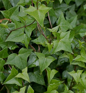 This plant bears ivy-shaped, slightly succulent, shiny green foliage.