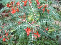 This plant produces inflated seedpods, which are usually seen on the bush at the same time as the flowers.