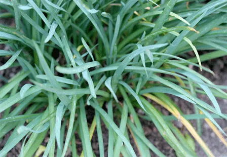 | Foliage | This is a clump-forming bulbous plant with garlic scented, grey, strap-like leaves/foliage. |