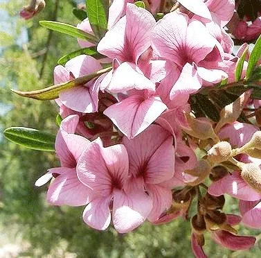 Showy, fast-growing evergreen with attractive, light green foliage and brownish-grey bark. One of the most attractive indigenous trees, it bears fragrant, rose-pink, pea-like flowers in early spring. It needs rich soil and plenty of water. Widely known by its Afrikaans name.