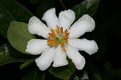 A substantial shrub with large, fragrant, white flowers during summer, followed by bright-yellow fruits. It attracts birds and butterflies. An excellent coastal plant.