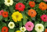 Good background bedding and border plants, and excellent cut flowers. The daisy-like flowers may be single, semi-double or double, in shades of scarlet, rose, orange, yellow or white. Sow seed during summer directly or in trays; germination temperature is 25°C. Space seedlings 200mm apart; pinch back to encourage bushiness. They should flower 10 weeks from germination. To avoid mildew, do not wet the foliage when watering. Zinnias prefer warm, dry climates.