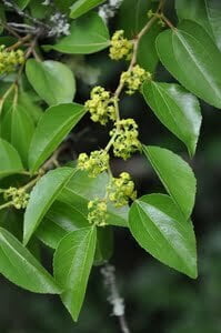 A thornless, upright tree with dark green leaves. Flocks of birds are attracted by the yellow berries, which ripen at the end of summer.